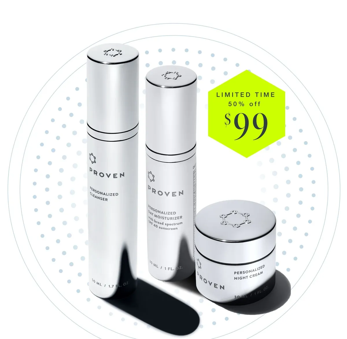 Personalized cleanser, day moisturizer & night cream